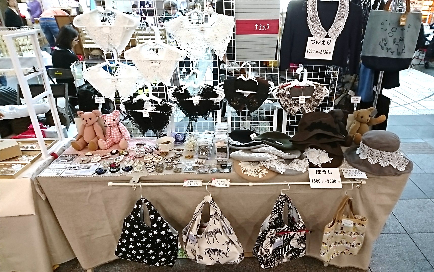 新作の布小物やアクセサリーを持って行きます。