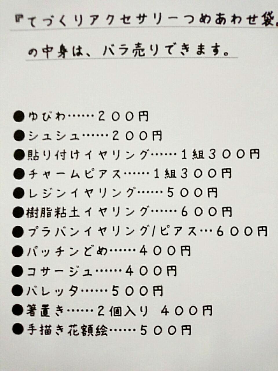 バラ売りしてもいい、ということでそれぞれお値段聞きましたので、貼っておきますね。
