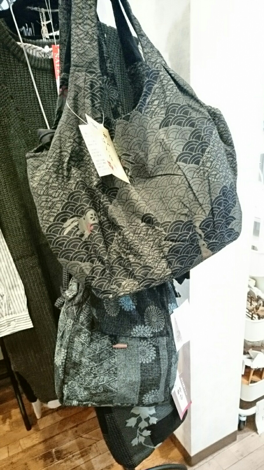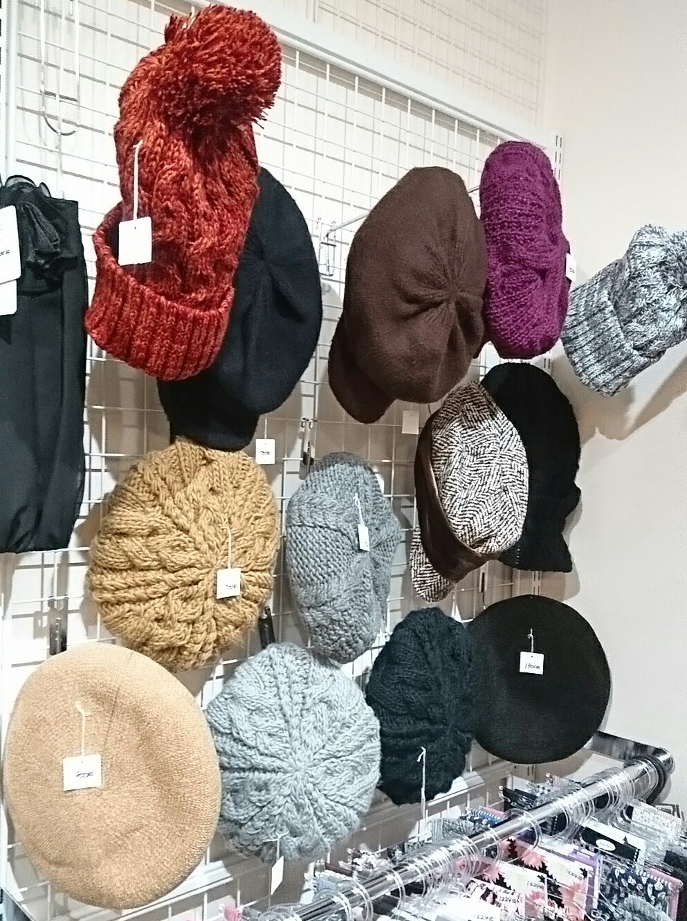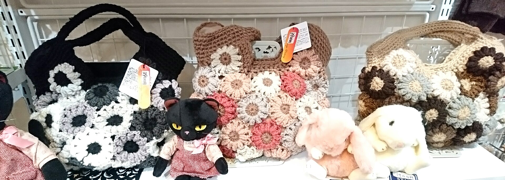 手づくり品の中には委託でお預かりしているものも多いので、ケージからは出せません……。