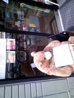 なるほど、お店の前で、ぬいぐるみの大きなクマに、メニューを持たせたりしてるし、店内でもクマグッズ売ってるもんね。