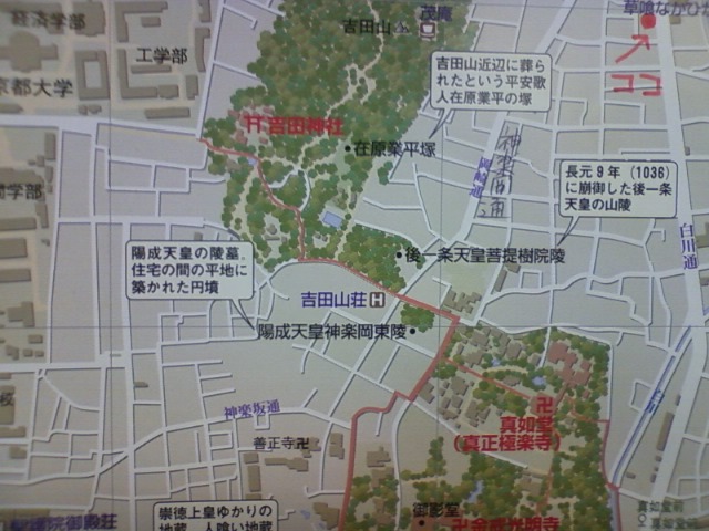 ず~っと、北にむかってぶらぶら10分くらい、歩いていただくと、銀閣寺道に出ます。