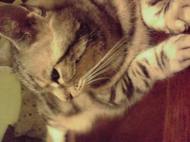 アメリカンショートヘアーなのですが、「ショートヘアー?」と疑いたくなるほど、フワフワヘアーのタロウ君は、早くもバテバテ。