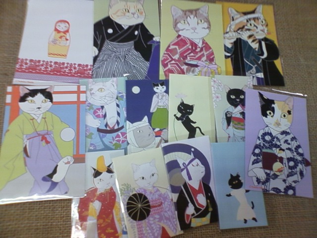ご好評いただいて、ほとんど売り切れになっていた猫のポストカードとぽち袋、やっと入荷いたしました。